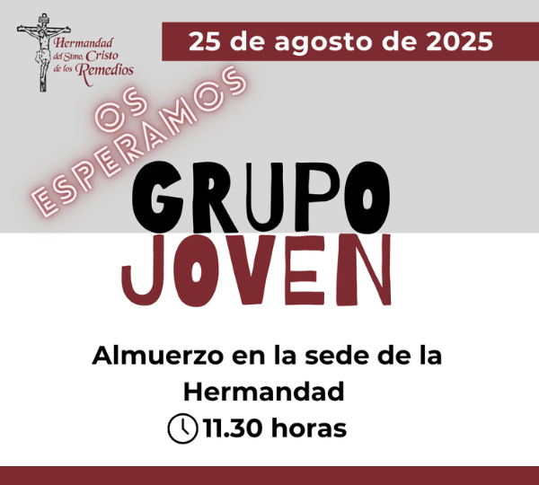 El día 25 os esperamos a todos los jóvenes de la Hermandad para disfrutar de un almuerzo juntos en la sede de la Hermandad.